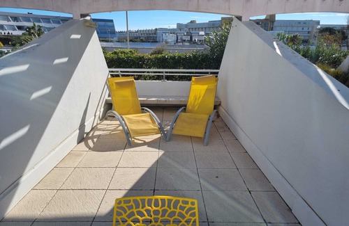 This apartment is located in the Naturist Village of Cap d'Agde. 5 minutes from the beach close to shops and entertainment with a beautiful terrace overlooking the harbor