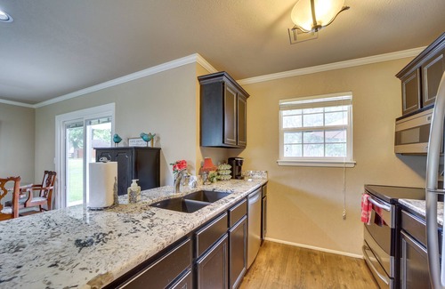 There's fun to be had at this Grand Lake vacation rental near the golf course! Surrounded by shady trees and just a short walk from Grand Lake O' the Cherokees, the cozy 2-bedroom, 1-bath cottage is great for small families. The home features a spacious living area, stone fireplace, modern kitchen, and a fenced-in patio perfect for al fresco dining. Rent a boat, jet skis, or paddleboard for days on the lake, or grab a book and lounge around by the community pool. Design your vacay your way!