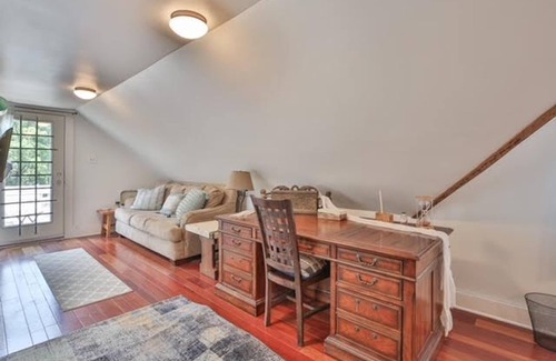 Perfectly located in the heart of wine country just 5 minutes from downtown Leesburg and countless attractions in the rural area. this loft apartment has a king bed and everything a traveler would need! Enter through a secret ivy covered door, up a set of balcony steps to enter a fantastic space. Beautifully decorated with king-size bed, comfortable couch, you have everything to unwind and relax (listen to the record player or watch TV). The bathroom is stocked with linens, soap, shampoo, and hair dryer, shower with body jets. The large desk is perfect for planning or working. Please note this apartment is located in a business area however all of the shops are closed normally by 9:00PM