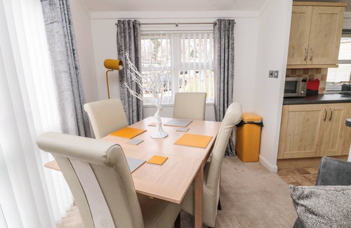 The open-plan living space in Nevaeh Lodge comprises of a kitchen equipped with an electric oven, gas hob, kettle, toaster, microwave, fridge/freezer, washing machine and dishwasher, a sitting area with a TV and a dining area with seating for four. There is a super-king-size with en-suite shower room and a twin bedroom, along with a bathroom. Outside, there is off-road parking for 2 cars and a decked area with furniture. WiFi, fuel, power, bed linen and towels area all included in the rental price. Two well-behaved dogs are welcome, however, smoking is not permitted. For your local conveniences, there's a shop within 3.3 miles and a pub within 1.1 mile. Escape the hustle and bustle of everyday life with a rural retreat to Nevaeh Lodge. Note: Check-in from 3pm, check-out by 11am. Note: On-site facilities include an 18-hole golf course, free of charge but subject to booking, a coffee bar and a mobile food van.