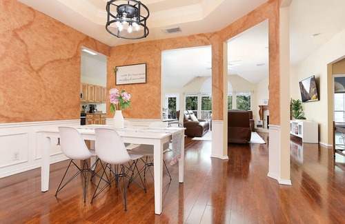 The home is minutes away from Six Flags, La Cantera, the RIM shopping center, Medical Center, UTSA, Top Golf, biking trails and so much more! Enjoy this open floor plan with generous living space perfect for family vacations and long stays! I have super comfortable leather reclining couches with a 65" Samsung TV. All mattresses are top tier quality, especially the King Beauty Rest mattress in the master. Book this hidden gem in the highly sought-after Jade Oaks Subdivision!