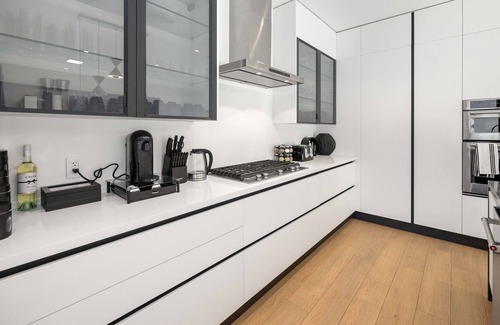 Upon arrival, you will find a driveway where you are able to park up to two cars. Make yourself at home by enjoying our many amenities including a glass panel that slides all the way into the wall providing a seamless transition to the pool and perfectly blending the indoor and outdoor spaces, a beautifully designed kitchen equipped with a gas range and a massive island covered in an exotic black marble, a plunge pool, game console, ping-pong table, and more.