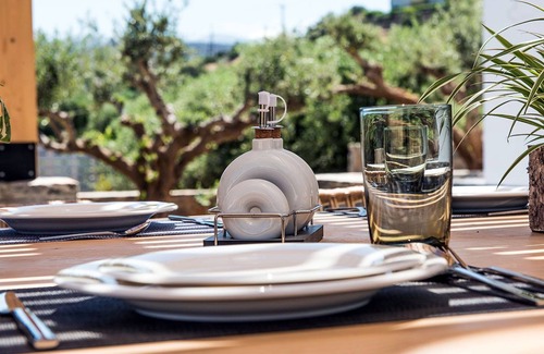 The property offers an outdoor area with a private pool, comfortable sunbeds and umbrellas surrounded by a beautiful garden with trees and flowers. There is a separate barbeque area, sun terraces and verandas, and provides absolute tranquility and relaxation surrounded by natural beauty for you and your family or friends.