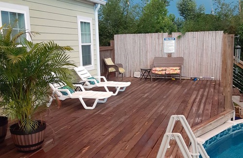 Private1000 square foot Guest Cottage with a Queen Bedroom, Large Bathroom, Full Kitchen, Dining area and Living room with a plush Queen Sofa Bed. Fenced in backyard and a Private Lakefront Pool. Surrounded by beautiful Bamboo Trees offering a Private driveway and parking next to the Cottage.