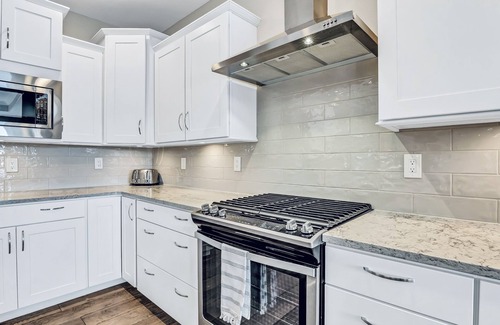 Well-stocked kitchen with plenty of dishes and cookware for all your needs