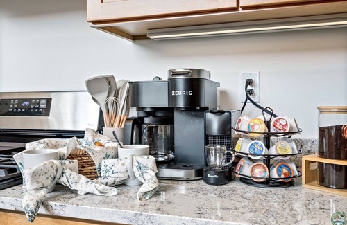 We provide a generous supply of cookware, silverware and much more to accommodate your stay. Our loaded coffee bar has a Keurig Dual-function coffee maker that brews both K-Cups and drip coffee. We have a Nespresso machine, and a French Press for all those coffee lovers. We provide plenty of K-Cups, Nespresso pods, and Tea options for your stay. We have various kitchen options such as a Crock Pot, Rice Maker, Slow-Cooker, waffle maker, toaster. Everything needed for cooking delicious meals during your stay!
