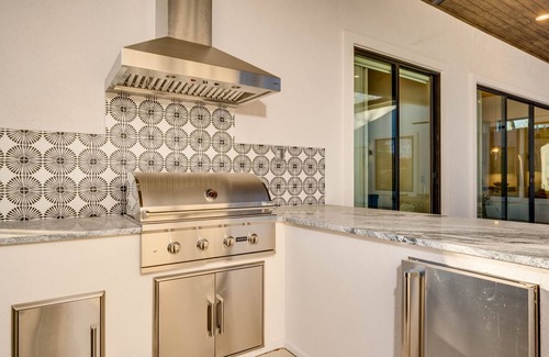 This stunning one-story new construction in a classic Austin neighborhood is beautifully decorated and features an entertainer's kitchen with an expansive island. Relax in the living room with views of the fabulous pool and hot tub. There are 3 bedrooms in the home with a 4th room that can serve as an office or bedroom. A separate Casita looks out onto the pool. A great place for a couple to have their own space from the group in the main house. Open to short term and long term rentals.