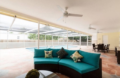-Brand new redone inground pool with great big screen patio ( you do not need bug spray ) , with 3 big outdoor ceiling fans to keep you cool while you are relaxing. Including Outdoor shower so guests can rinse off with hot and cold water! Enjoy night swimming in the pool, with no worries about bugs.