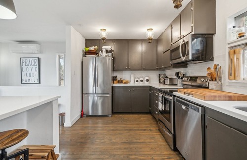 kitchen is fully updated and ideal for entertaining, while wood floors and