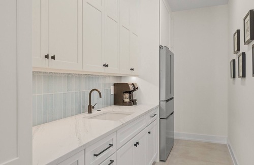 The home’s great room is on this level with the fully stocked kitchen and butler pantry that collectively include 2 sinks, 4-burner cooktop with exhaust hood vent, double oven, 2 full sized refrigerator and 1 freezer (with ice maker), nugget ice maker, 3 sets of trash and recycling bins, 2 dishwashers, microwave, toaster, coffee maker, and more. The kitchen is very well appointed with cookware, bakeware, dishware, cutlery, and specialty items like crockpots, blenders, and more. The kitchen is set up perfectly for you to host your family or to support private in-home catering services that our team can help you arrange through one of our preferred vendors for an additional cost. If you have any questions about the kitchen or it’s supplies, our reservationists would be happy to provide more details. Additionally, the interior dining area has a custom-built dining table for 14, plus kitchen bar seating for 8, and balcony dining for 8. The living room provides comfortable custom furniture and a media center (80” + TV). Bedrooms 1-4 are on this level. Bedroom 1 is the home’s master bedroom. It provides balcony access, a king bed, walk-in closet, a dedicated workspace, and an en suite bath that includes an oversized vanity with double faucet trough sink, and a large shower with free-standing bathtub. Bedrooms 2 and 3 are king suites that feature balcony access (Bed 3 - private balcony), a king bed, storage closet(s), and an en suite bathroom with vanity and walk-in shower. Bedroom 4 is the home’s bunk room featuring 2 sets of custom-built bunk beds (queen/queen and twin/twin). It has a small storage closet and a large built-in closet system, and an en suite bathroom with a large vanity with double faucet trough sink, and a shower/bathtub combination. It’s perfect for all ages! There is also a half bath that can be easily accessed from the great room or the great room balcony for easier pool access, and a laundry room with 2 stackable washer/dryer units on this level.