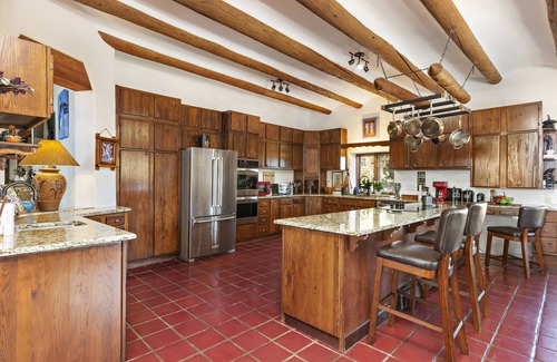The large, open, fully-equipped kitchen will inspire you to plan your own meals while experimenting with fresh Santa Fe ingredients from the farmers market or nearby grocery stores. Or take a short drive to the historic downtown district and experience the culinary adventure of the world class Santa Fe dining scene. Be sure to stop in at Bob Cat Bite or the famous Harry’s Roadhouse, located just a few minutes down the road.