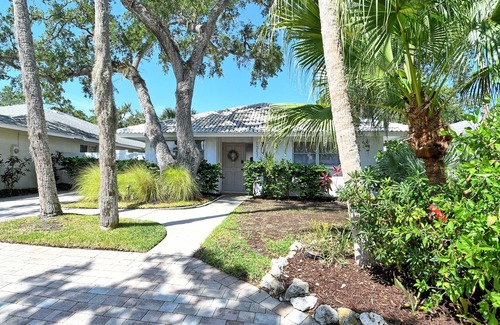 First, the location couldn't be better! We are across the street from Siesta Key beach!! We are located in the beautiful tree-lined community Polynesian Gardens that is tranquil, quiet, and full of friendly neighbors. The neighborhood is on the intracoastal waterway and our Villa is across the street from the water's edge. There is a private community dock steps away from our front door that is perfect for fishing, relaxing, taking in some sun, and even spotting dolphins as they swim right up to the dock every morning. There's also a private community heated pool in the middle of the community that is available for a dip year round.