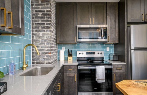 This space has been thoughtfully renovated to bring the funk. 2 bedrooms and 1 bath on the first floor, 1 bed and 1 bath on the second floor. Fully renovated, all new! Business in front - Hot tub in the back :)