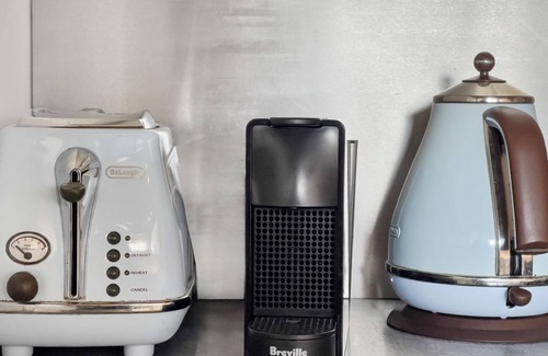 * Toaster, kettle, and microwave