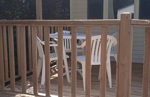 This 3-room mobile home spans an area of 25 square meters and features practical furnishings. The living/sleeping room is equipped with one sleeping facility and a flat-screen TV. Additionally, there is one room with a French bed measuring 140 cm wide and 190 cm long, and another room with two beds, each 80 cm wide and 190 cm long.