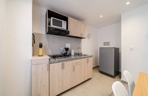 "Anima 64 is an excellent accommodation choice in Bogotá for those seeking a modern and minimalist space for their stay. It is located in Chapinero Alto, close to the city's most popular tourist destinations. The building features 24 apartments, each equipped with everything you need for a comfortable and enjoyable stay. The apartment includes a semi-loft bedroom with a maximum capacity of 4 people."