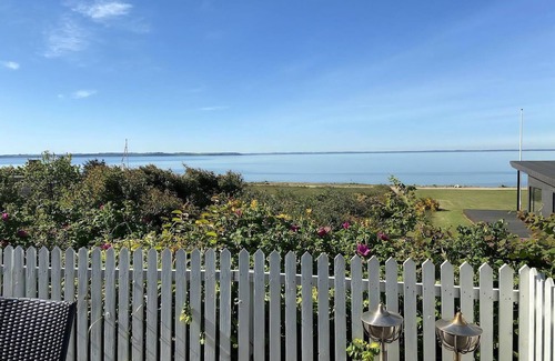 By Hærup Strand, only 90 meters from the water, lies this charming, small cottage with the most amazing views of the Limfjord both from the living room and from the terrace.