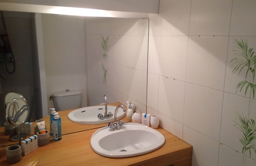 Fully equipped (ceiling fan, flat screen TV, coffee maker, kettle, microwave, cupboard etc ...). You can enjoy your meals on the very pleasant terrace.!
