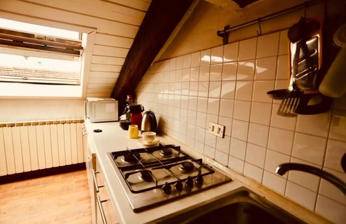 Attic in the heart of the historic center of Turin, a stone's throw from the Egyptian Museum. Unique romantic and quiet environment with small terrace. Double bed, equipped with equipped kitchenette, bathroom with shower, in a period building in a pedestrian area with lift. On request parking space in the courtyard (10 euros per day).