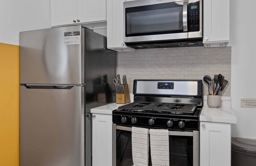 » Whip up delicious meals in our newly remodeled kitchen, boasting sleek quartz countertops and fully equipped with everything you'll need. Fire up the BBQ in your private front yard and savor San Diego's pleasant weather every morning.