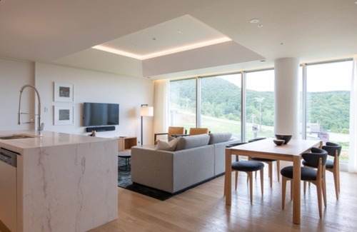 Located on a hilltop just up the main street Hirafuzaka the location offers a panoramic view of Nisekos townscape and lush mountains Guest rooms are designed to be comfortable even for long stays and are equipped with sophisticated system kitchens and washing machines Excluding hotel rooms Use it as a base for sightseeing or to relax and refresh your mind Enjoy your vacation stay at Skye Niseko Access Approximately 15 minutes by car from Kutchan Station Parking Reservation required Yotei side parking 1000 yennight Hotel front parking 2000 yennight Covered garage 2000 yennight / Two bedrooms bathroom kitchen