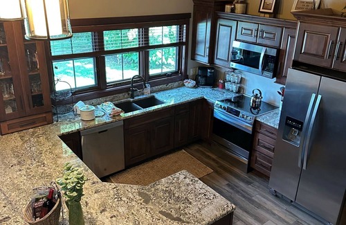 The main floor has a full kitchen which includes everything needed to prepare meals, keep your beverages cold and watch a movie. Also included: washer/dryer, 1/2 bathroom on main floor, outdoor shower, beach towels, 2 kayaks, 2 paddle boards, floaties, outdoor patio, grilling area, docking space for boat(s).