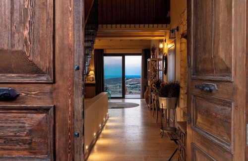 With its 10 bedrooms 12 bathrooms, and garden level living room and each has its own fully equipped kitchen, fire place and aircon, covered and uncovered terraces, large big private swimming pool, long chairs, hamac, this stone Villa offers the perfect holiday setting with its blue sea and Chios Island view,while presenting unique and breathtaking sunset views all year round.
