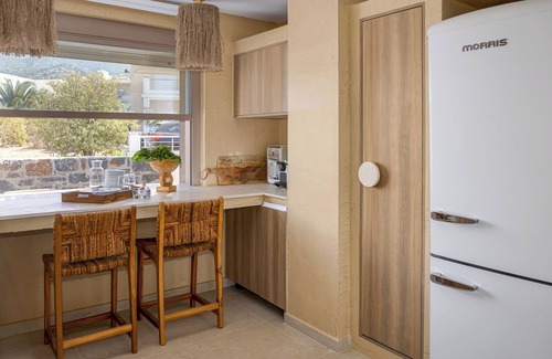 Discover laid-back luxury at Numa Beige Villa, a stylish accommodation in Malia, Crete. This one-level villa features an open-plan living area with sofa bed and fully equipped kitchen, one ensuite bedroom with king-size bed, and a second bedroom with two singles (convertible to king). A separate shower adds extra convenience.