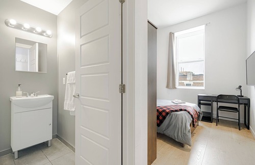 Vous aurez votre propre chambre privée pouvant accueillir deux personnes. Chaque chambre dispose d'une salle de bains et d'une douche privatives. De plus, chaque chambre dispose de sa propre télévision, d'équipements de salle de bain, d'un réfrigérateur, d'un porte-manteau, d'un porte-chaussures et d'une commode. Vous pourrez utiliser la cuisine, le salon, la terrasse et le stationnement communs avec d'autres invités qui visiteront également Montréal. Et il y a une laveuse et une sécheuse au bas de l'immeuble.