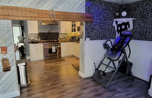 Very private huge oasis backyard, with 2- hammocks, gazebo & Bocce ball court 32' by 10' There are 3 custom sky lights that work by remote (2). Watch the stars and moon from the comfort of your bed! This House is Built to Entertain!