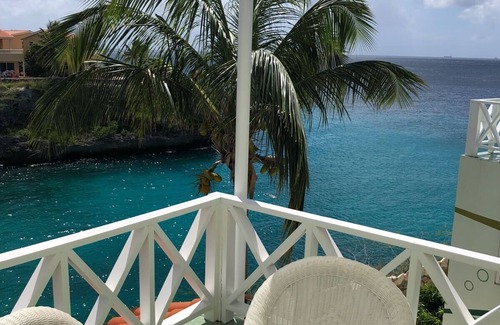 It sits approximately 20 feet above sea level and is located less than 12 feet from the waters edge. The view is nothing less than spectacular. An enlarged 1st floor terrace with a roof for shade allows you to enjoy ocean front dining or to just kick back and enjoy the sights and sounds of the ocean. A newly installed shade sail on the spacious 2nd floor terrace provides a beautiful view while allowing for protection from the sun. Granite countertops in kitchen and an enlarged bedroom make this unit unique within the resort. Direct TV with CNN, Disney, Discovery, Nat Geo and many more. Lounge in the pool just outside your back door or walk down the steps to snorkel or dive at Playa Lagun. Two dive shops and two restaurant's are located next to our property with lots of other restaurants within a 10 minute drive. Christoffel National Park and Shete Boca are about 15 minutes away.