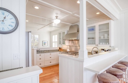 You enter SeaGlass Cottage through a charming wooden arch and boardwalk, a hint at the timeless, relaxed feeling of this home. The entry way will confirm that you’ve arrived in a classic beach cottage with a difference: lots of sunlight, the sound of waves, and a view through to the ocean, but with all the modern amenities.