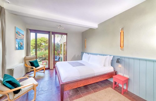 Wash your worries away in this tranquil two-bedroom villa, thanks to its private Zen garden-level terrace with chaise loungers. Both bedrooms feature sea view garden terraces, while the modern interior is equipped with a custom kitchen, complete with hardwood countertops. The airy open layout for the living and dining areas mixes soft and hardwood furniture with far-reaching views of the coast and rainforest mountains.