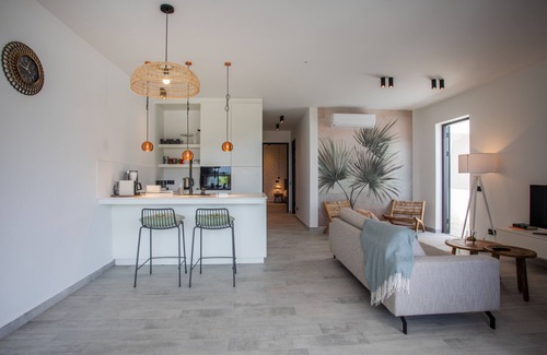 The apartment is within walking distance (850 meter, 0.5 mile) of Blue Bay's beautiful sandy beach, where you can enjoy crystal clear waters, sunbeds and shady palm trees. Whether you want to snorkel, dive, paddleboard or just relax, the Blue Bay Beach offers something for everyone. As a guest of The Reef, you have complimentary access to the beach including a beach chair. Other facilities of the resort, such as the 18 holes golf course, tennis courts, diving, may be used, and a corresponding fee will be charged.