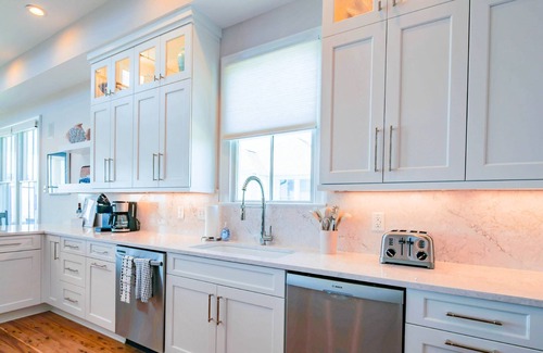 * Newly renovated kitchen with custom cabinets, gorgeous granite counters, two dishwashers, refrigerator, oven, gas cook top, microwave, wine refrigerator & more!