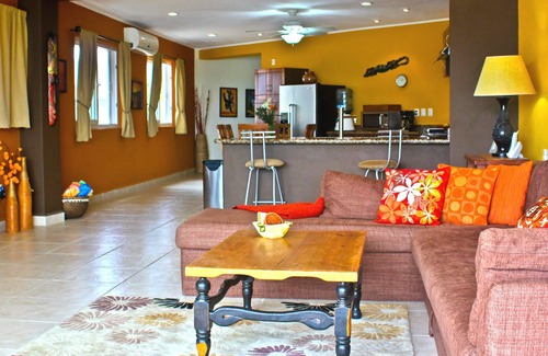 Spacious condo located on the beach with designer colors and modern furnishings. Wake up each morning to gorgeous views of Banderas Bay, the second largest bay in the world. The beach view from the 3rd floor, where one can see anything from amazing sunrises and sunsets to whale watching or surfing yet have easy access from the front entrance at street level to restaurant row, just a few minutes away.