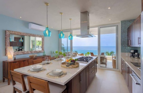 Welcome to Casa Oceano Turquesa in the heart of Puerto Vallarta, Mexico! This stunning 2-bedroom, 2-bathroom center unit on the 4th floor offers breathtaking ocean views of Banderas Bay and the Pacific Ocean. Whether you're looking for a romantic escape, a family getaway, or an unforgettable vacation with friends, our luxurious oceanfront rental is the perfect destination. Relax in this calm, stylish space.