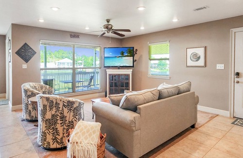 Off the clock is the perfect place to relax with the whole family at this peaceful place to stay. Located on the water, you can swim off the back deck while your boat is docked. Enjoy the Jourdan River. Let your imaginations run wild. Great places to eat nearby and right off the interstate. Nothing like enjoying a night on the water and having a cup of coffee over looking the water and beautiful homes. This place is perfect for you and your family to enjoy the beautiful MS Gulf Coast. Sleeps up to 6 people, 1 King Bed, 1 Queen Bed, and 1 queen Sofa Bed in the living room.