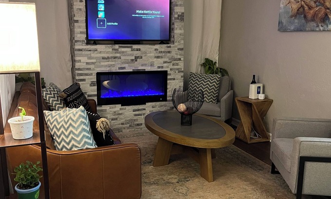 Experience comfort and convenience in this updated 3-bedroom, 3-bath home, ideally located 12 minutes from downtown Oklahoma City and 7 minutes from the State Fairgrounds. Hosting up to seven guests, the property offers a clean, modern space with a king, queen, and twin bed.
