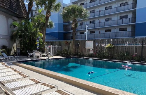As soon as you enter you will be greeted with an overview of the living room and kitchen area. Bedrooms are spacious in this one level, single floor unit. The swimming pool is open year round 9am to 8pm, located right outside of the living room doors and heated. Located directly next to the World Famous Cocoa Beach Pier.