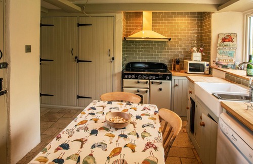 Amenities: Electric central heating with 2 x woodburning stoves. Rangemaster electric cooker and hob, microwave, fridge/freezer, washing machine, coffee machine. TV and WiFi. Fuel, power and starter pack for woodburning stove inc. in rent. Bed linen and towels inc. in rent. Highchair and travel cot available. Off-road parking for 2 cars. Enclosed garden with furniture and decking. Two well-behaved dogs welcome. Sorry, no smoking. Shop and pub 0.7 miles, beach 1.4 miles. Note: Check-in from 4pm, check-out by 10am. Note: The pull-out bed is suitable for children/teenagers