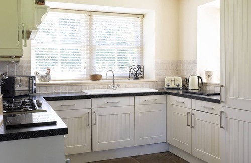 Fully equipped kitchen area with 5 ring gas hob, oven, microwave, dishwasher, large fridge / freezer and washing machine. A chest freezer is also available for guest's use.