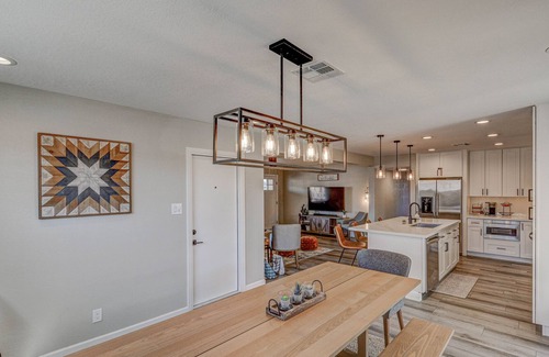Our retreat was built for a sunny getaway with your best gal pals, a couples get-a-way and of course your family. We have enough beds to sleep up to 14 people (no pullout couches or blow up beds) with brand new memory foam mattresses and fresh bedding. A modern kitchen, large dining area and plenty of charging outlets await you for your devices.