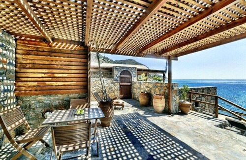 400 sqft Studio with integrated kitchen and separate bathroom, large double bed and extra sofabed, seaview, private gazebo and private sunbathing terrace directly on shore. Steps to the sea. Opposit the famous island fortress of Spinalonga. Free Wifi