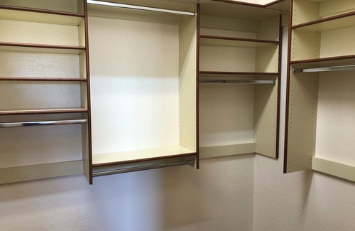 Our house has 3 bedrooms. The primary bedroom has a king size bed, smart TV, looks out over the backyard and golf course, and has its own large double bathroom (2 vanities, 2 toilets, 1 urinal, 1 shower and 1 bathtub) and his and hers walk in closets. The second bedroom also has a king size bed with smart TV. The third bedroom boasts a murphy bed (double), which doubles as a desk when retracted, perfect for a home office set up that can easily be converted into a bedroom when guests come to visit. The home has a large laundry room, which also has a desk area with a printer.