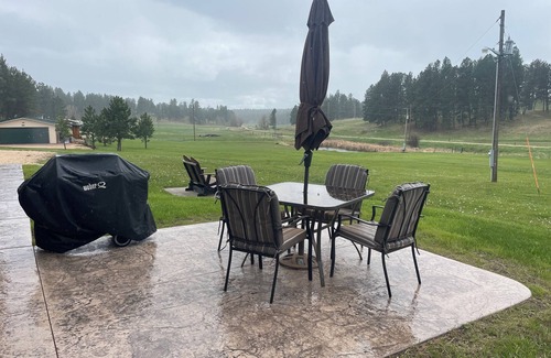 This 3 bedroom 2 bath log cabin offers over 1500 square feet of vacationing space. The interior of the cabin is modern with some rustic flair and offers a clean, fresh space to relax. Located on one private acre, the back yard has direct access to the Mickelson Trail and overlooks a private horse ranch. There are two queen beds, 3 single beds (NOT bunkbeds) and a queen-sized pull out sleeper. We also have a roll-away bed that can be placed in one of the bedrooms or in the living area. Fully furnished kitchen, laundry room, wifi, television and fireplace, A/C. We'd love for you to be our guests!