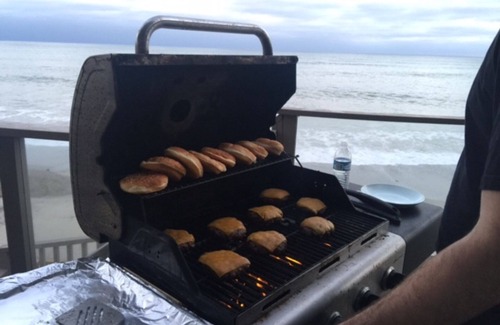 Ocean front. No Sunday checkouts and no pets. The house is built on the beach, and has 8 bedrooms and 5 baths in a duplex style three story house. Licensed for twenty guests and seven cars. The House can be split into the sand level rental (3 bdrs, 2ba) and the Upper Two Floors rental (5bdr, 3 ba). Wake up to the water. The sound of the waves at night, and the views are unforgettable. The house is well appointed, but it’s a beach house and it’s not super luxurious.