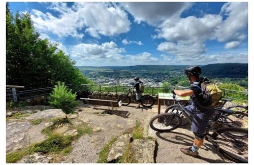 Our Riviera Suite is beautifully nestled in the pretty climatic health resort of Bollendorf, right on the border between Germany and Luxembourg. Here, you can enjoy the private ambiance of this holiday apartment. One of the bathrooms, for example, is equipped with a whirlpool, where you can relax in complete privacy and leave everyday life behind. Relax from the garden and enjoy the breathtaking panoramic view that stretches across the entire valley and into the forest. A spacious sauna and whirlpool await you in the garden, offering views of the magnificent landscape. A mobile massage table offers you the freedom to relax in the house and in the well-kept garden.