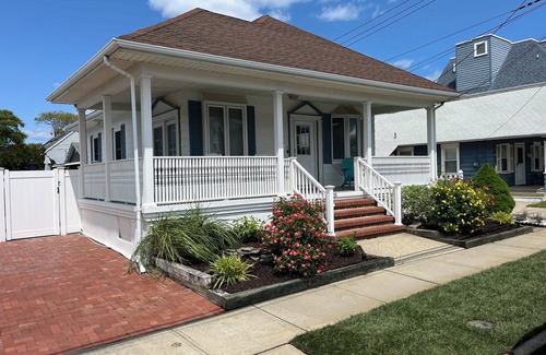 Smell the ocean air as you rock the day away on our wraparound porch. Located at 1203 A Street in Belmar, our 3 BR, 1 BA home has a new outdoor shower, central A/C & heat, fully stocked kitchen with new dishwasher, paver patio with seating for 6, bbq, dining areas in & out, 1-car driveway, fenced-in PRIVATE yard, and W/D in basement. Includes 4 Belmar beach badges (needed for ages 13+). Bath towels and bed linens provided.