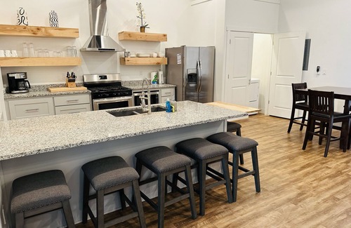 Inside the Inn there are four separate condos each approximately 1200 sq ft. and includes everything you'll need for your stay except the food. Full Kitchen, 60" TV's, plenty of comfort for your whole crew. All units are equipped with roll out sofa beds, WiFi, A/c and heat, big screen TVs, full kitchen setup for cooking, linens, towels, bedding, pillows, laundry pods and dryer sheets as well as shower essentials.